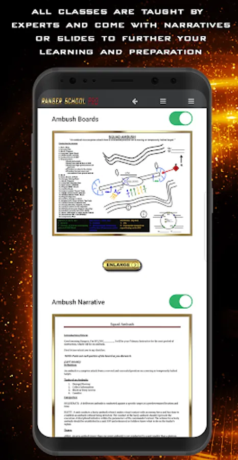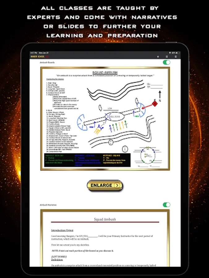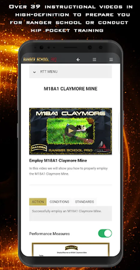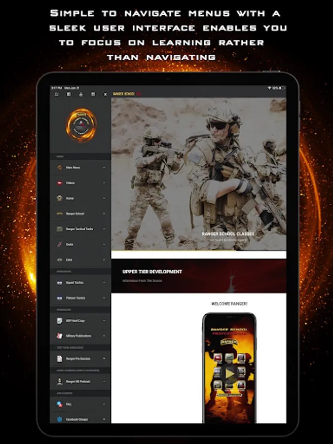 Ranger School Professional helps you fully prepare for the tactical and technical portion of Ranger School, deployment, CTC rotation or hip pocket training by giving you instant access to Infantry tactics classes given by actual Ranger experts, high-definition video instruction, FAQ, Ranger School Tips provided by instructors and former Ranger students, quick access to the information on ARTB website, and much more.