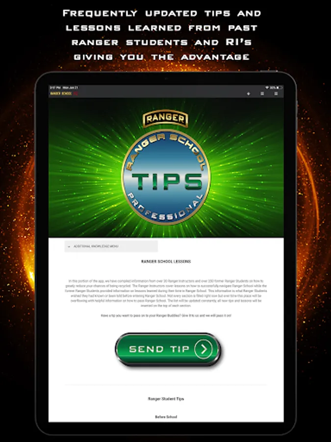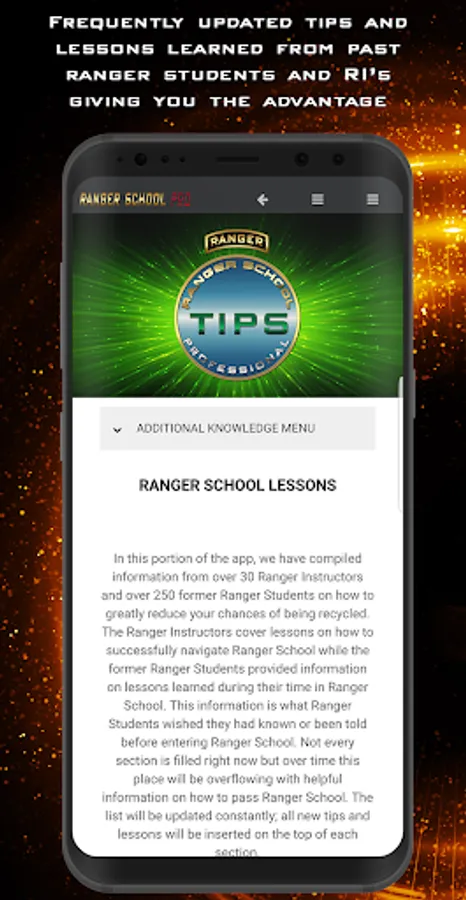 Ranger School Professional is constantly getting updated and gets the information from the source. This app is the ultimate resource if you are trying to significantly increase your chances of graduating or being a more proficient Infantryman. If you have a question or concern, you can message us from the app and get a quick response.