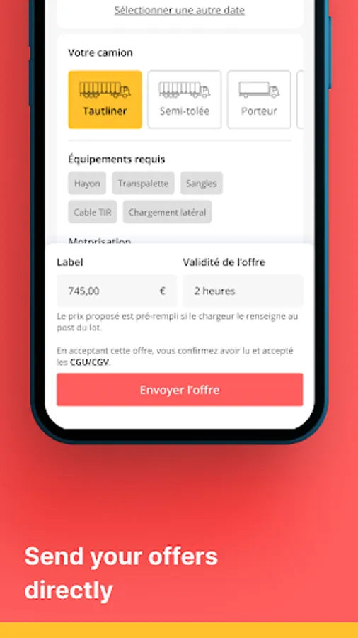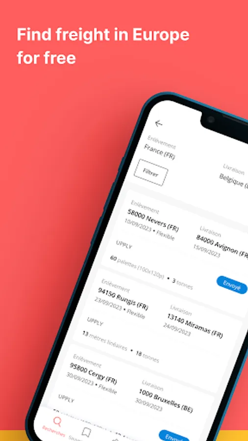 • Search for freight anywhere in France, Belgium and Germany, to reduce your empty trips and optimise the loading of your vehicles.