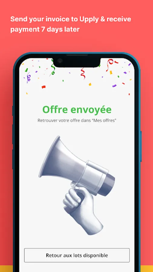 • Receive your guaranteed payment within 7 days of validation of the POD. By sending your invoice directly to Upply, you can be sure of getting paid. Gain total peace of mind when it comes to your cashflow!