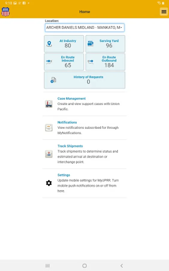 The MyUPRR mobile application provides our customers the ability to manage and view the status of all rail shipments. Application users have the option to receive notifications directly to a mobile device, retrieve current information about their shipments, and create, review, or update a service issue.