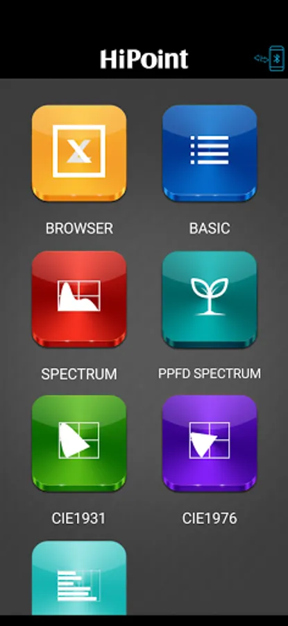 HiPoint PPF Analyzer HR-550 is a wireless controller application for HR-550 Smart Spectrometer which provides 6 main features, namely Basic, Spectrum, PPFD Spectrum, CIE1931, CIE1976, and, CRI.