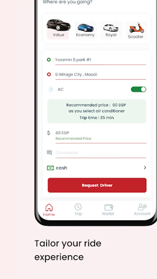 Users can select a specific trip type that aligns with their needs. Trip types allow users