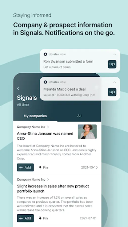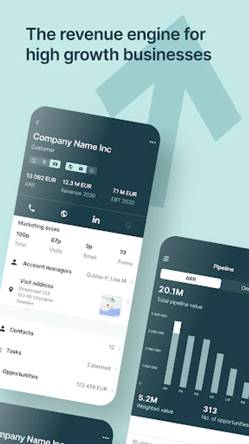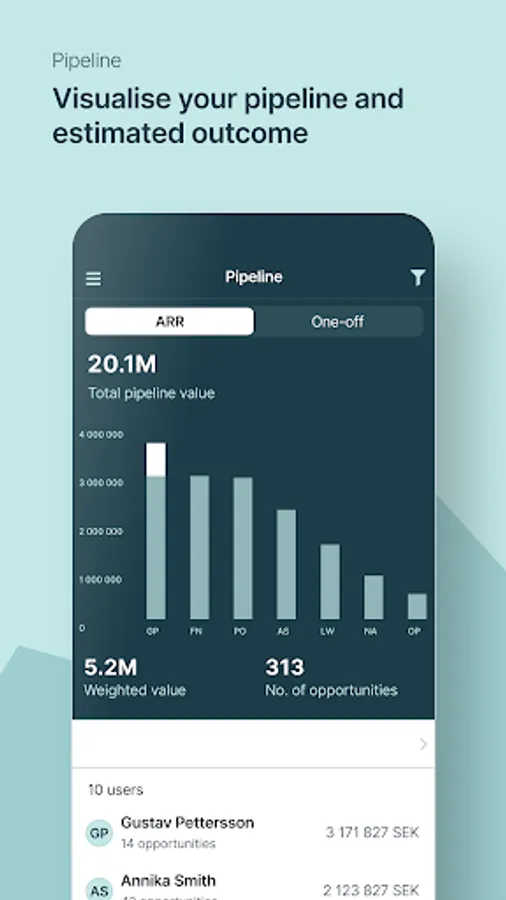 The app features a modern and intuitive user interface, making it easy to quickly access all your sales data. Plus, stay informed with push notifications and receive alerts when leads and opportunities are created.