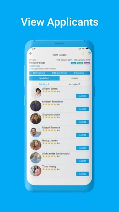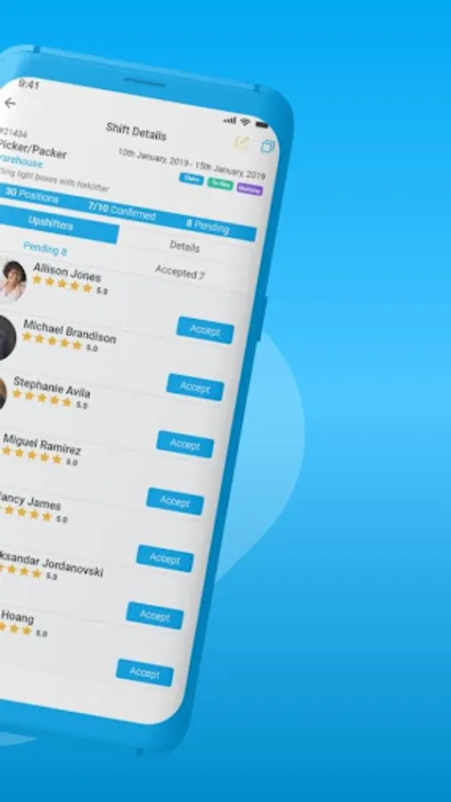 Transparency: You are able to see all Upshifters who apply to your shifts, view their profiles, and accept those you think are the best fit.