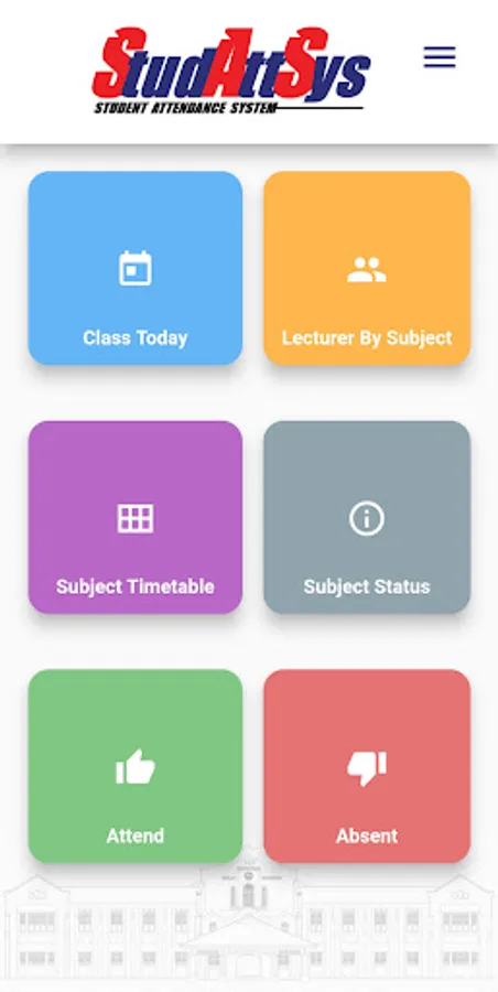 Developed to help students to check the class schedule, the list of lecturers who teach for the subject taken, the current status of the subject based on student attendance, the attendance list (ATTEND / ABSENT) for the subject taken and to facilitate the marking of student attendance in class