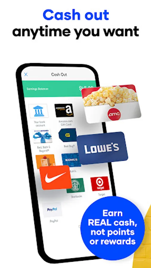 And yes — it’s real cash back. No confusing rewards, points, or credits. Just actual money you can transfer straight to your bank account or PayPal. You can also cash out your earnings as an e-gift card to retailers you love, like Amazon, Starbucks, Walmart, and so many more.