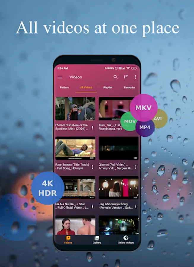 Aone video player supports all video formats, 4K Ultra HD, HDR video files.