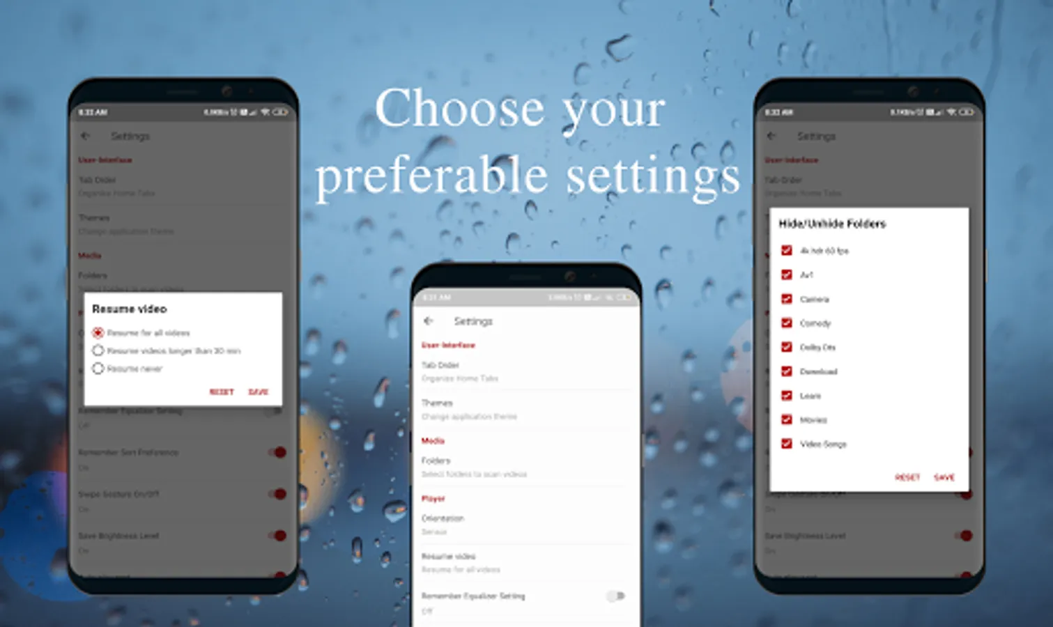 ● Multi playback option: auto-rotation, aspect-ratio, screen-lock, repeat mode etc.