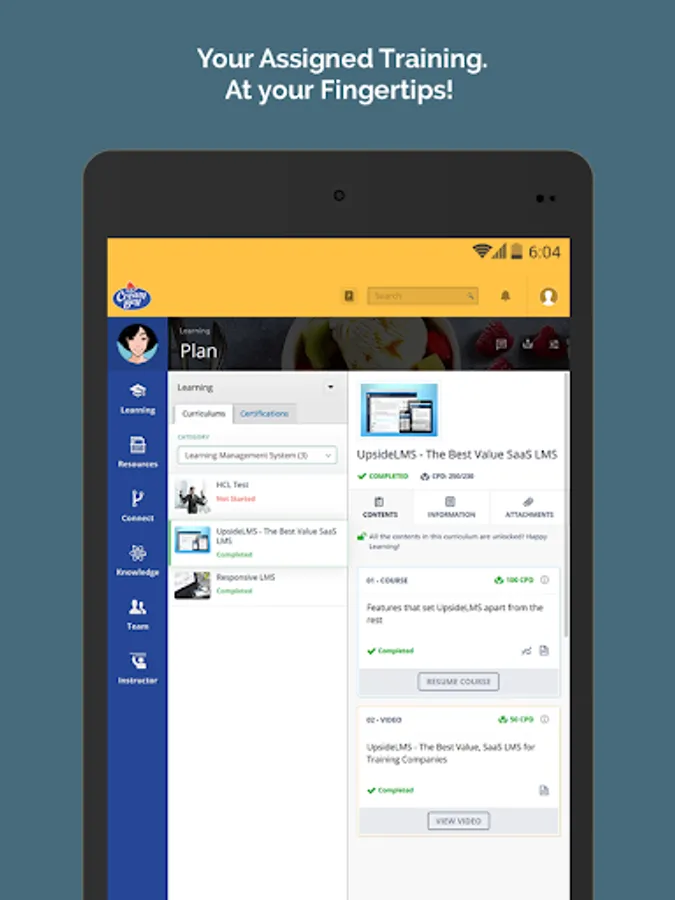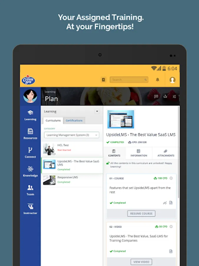 You can take the training assigned to you, with your progress being automatically tracked and synced with UpsideLMS.