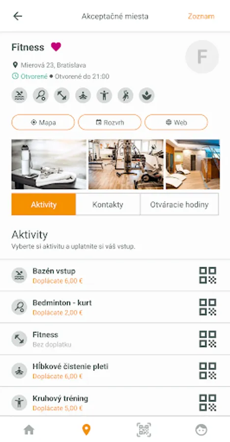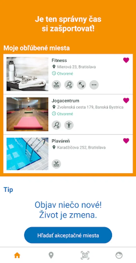 A mobile application that allows the holder to use the services in a network of partner facilities for sports, regeneration and relaxation. As an non-monetary benefit, the employer provides it to its employees, who can use it every day to draw on one activity in the entire network of acceptance points. The user receives a discounted subscription to sports venues and the opportunity to use one activity per day in a wide network of acceptance points throughout Slovakia. In addition to entering individual activities, the holder has the opportunity to take advantage of attractive discounts in the network of acceptance points.