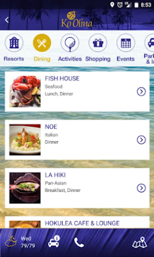 2. Where to Dine: From the signature dining rooms at our beachfront resorts to the award-winning Roy's at Ko Olina and Peter Merriman's eclectic Monkeypod Kitchen, Ko Olina has a restaurant to satisfy every palate. Make reservations for resort eateries simply and quickly.