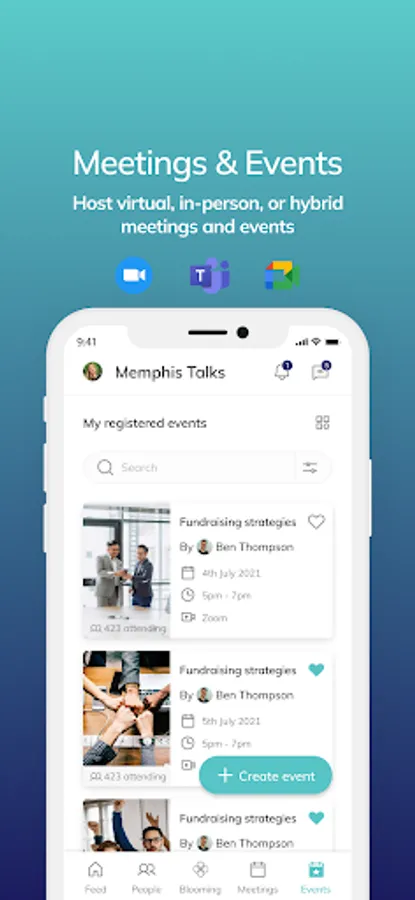 Meetings & Events – Zoom, MS Teams, or Google Meet meetings & events