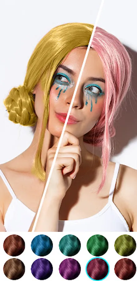 Hair Color Booth comes with similar options and user interface but with a wider palette for colors and shades. Take a selfie and change your hair color with using color pallets. You need to use fingers to apply Garnier colours, loreal hair colors and Clairol myshade in strokes.