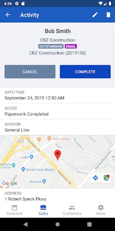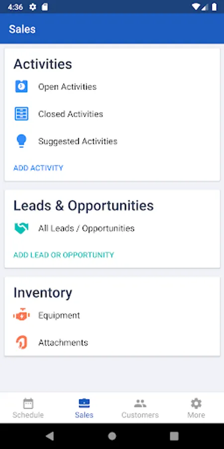 • Simply complete a sales activity or schedule a follow-up action to keep the sales cycle moving with just a couple of taps