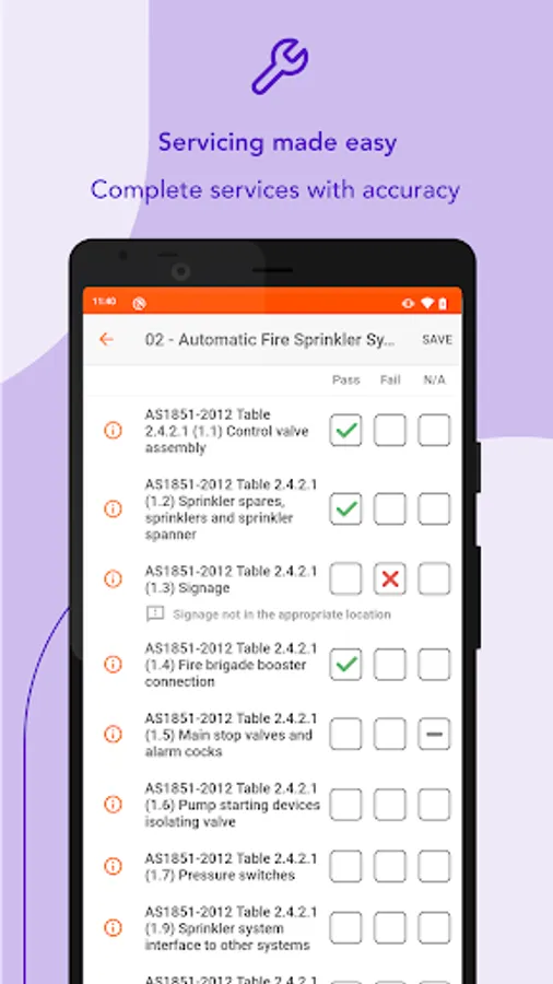 - Prompts to help you service with accuracy & to legislation