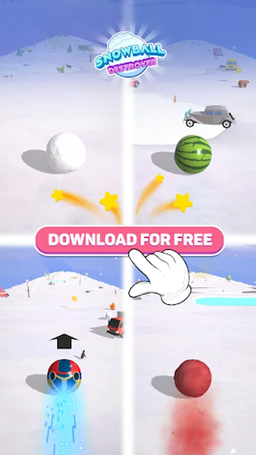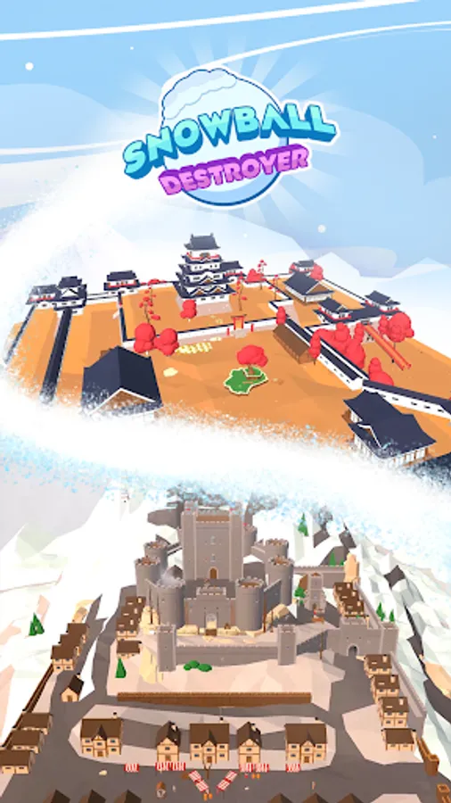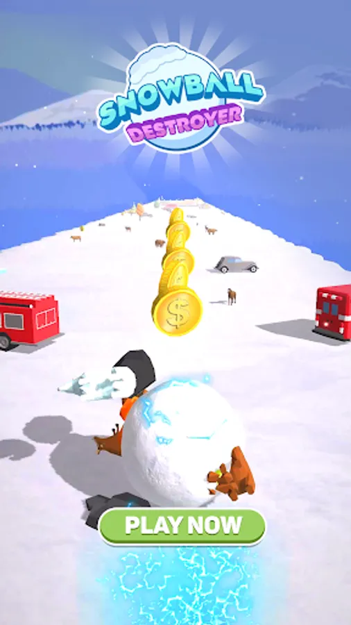 Play the role of a moving snowball, sweeping away all obstacles on the way, proceeding to destroy long-range targets.