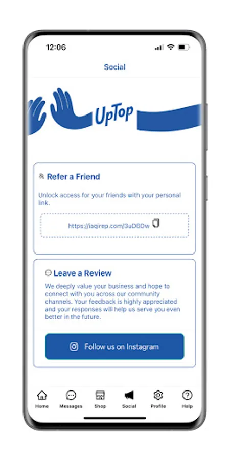 Welcome to the UpTop mobile app! Whether you’re at home, on the go, or even at an UpTop location, our mobile app brings the best of UpTop directly to your mobile device.