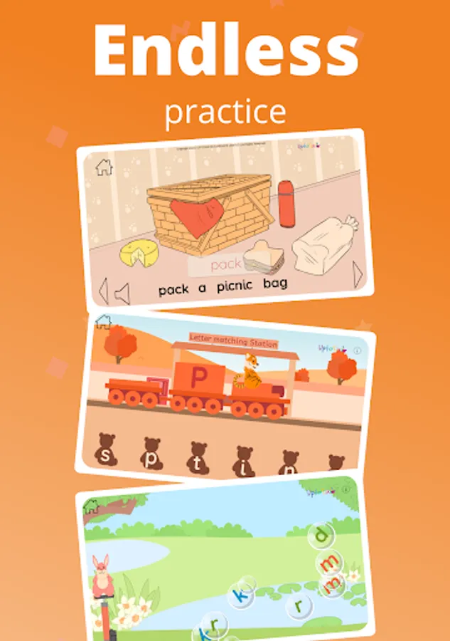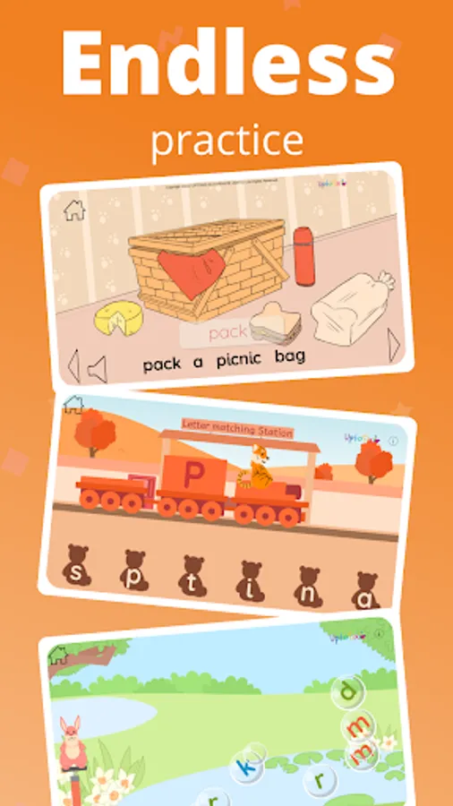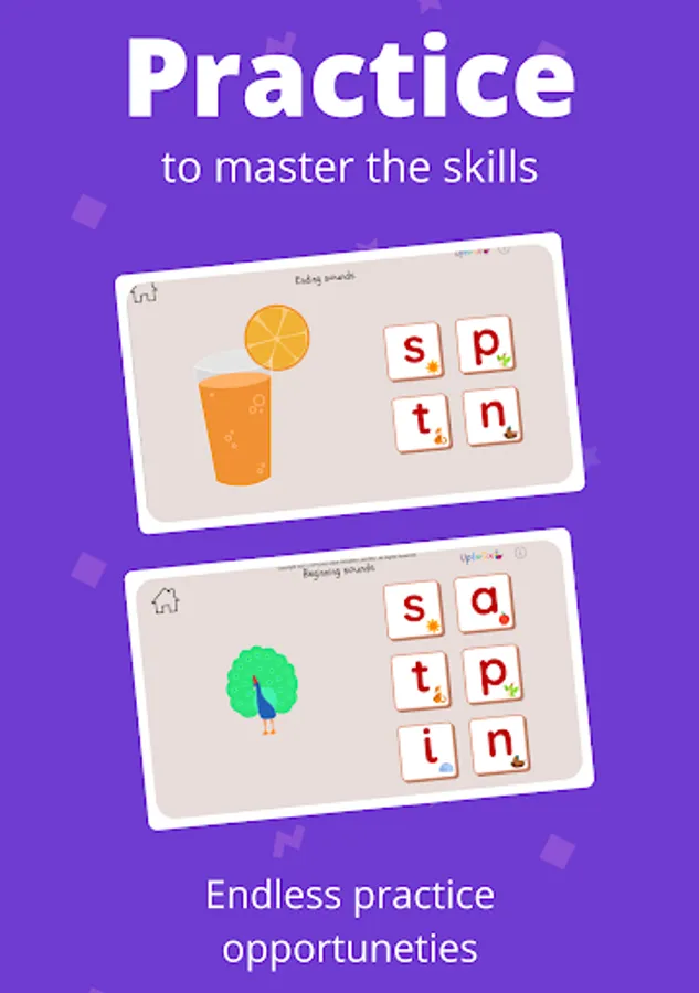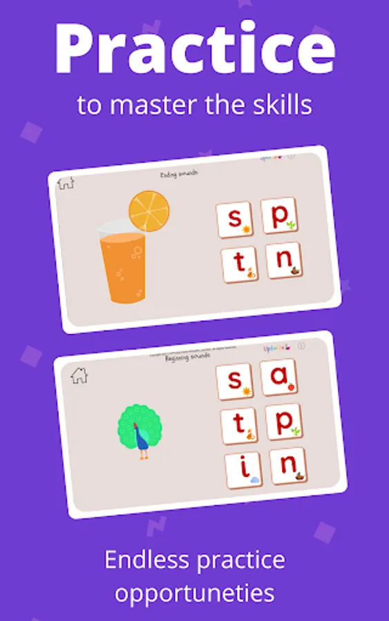 To master phonics skills, children need endless practice, UptoSix Phonics, reading, and word spelling games provide endless practice opportunities to master reading and spelling skills.