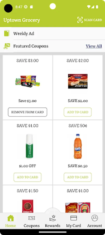 Claim as many coupons as you want with one simple scan! No more searching through mailers or printing out emails, Uptown Grocery is bringing rewards right to your mobile device!