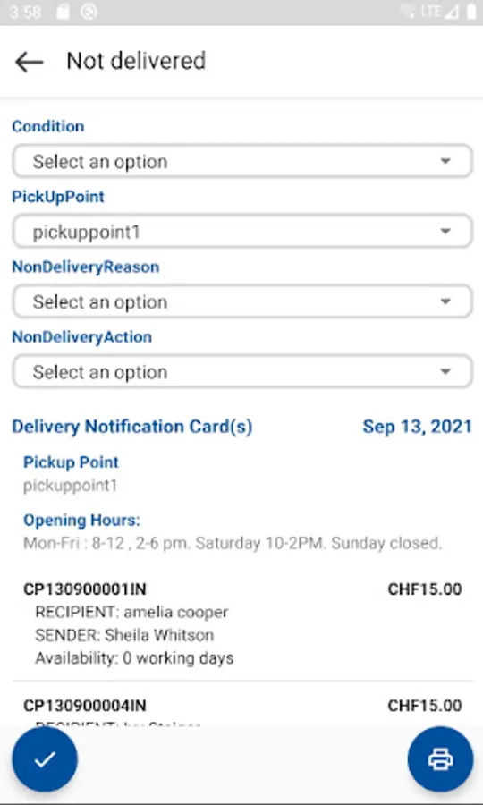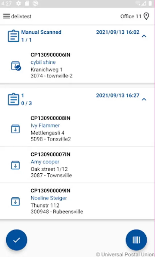 This app allows Delivery agents to login, select the facility where working at the moment, and retrieve their assigned Distribution Notification List. Then, they can start the mail delivering task, with or without internet connection, registering delivery and failed attempts to deliver events, as well as manage their shift totals.