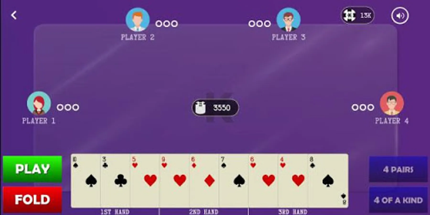Kitti or Kitty or 9 Card Brag can be played by up to five people. Kitti is popular game with multiplayer features in closed network. It is variations of real teen patti a popular indian card game
