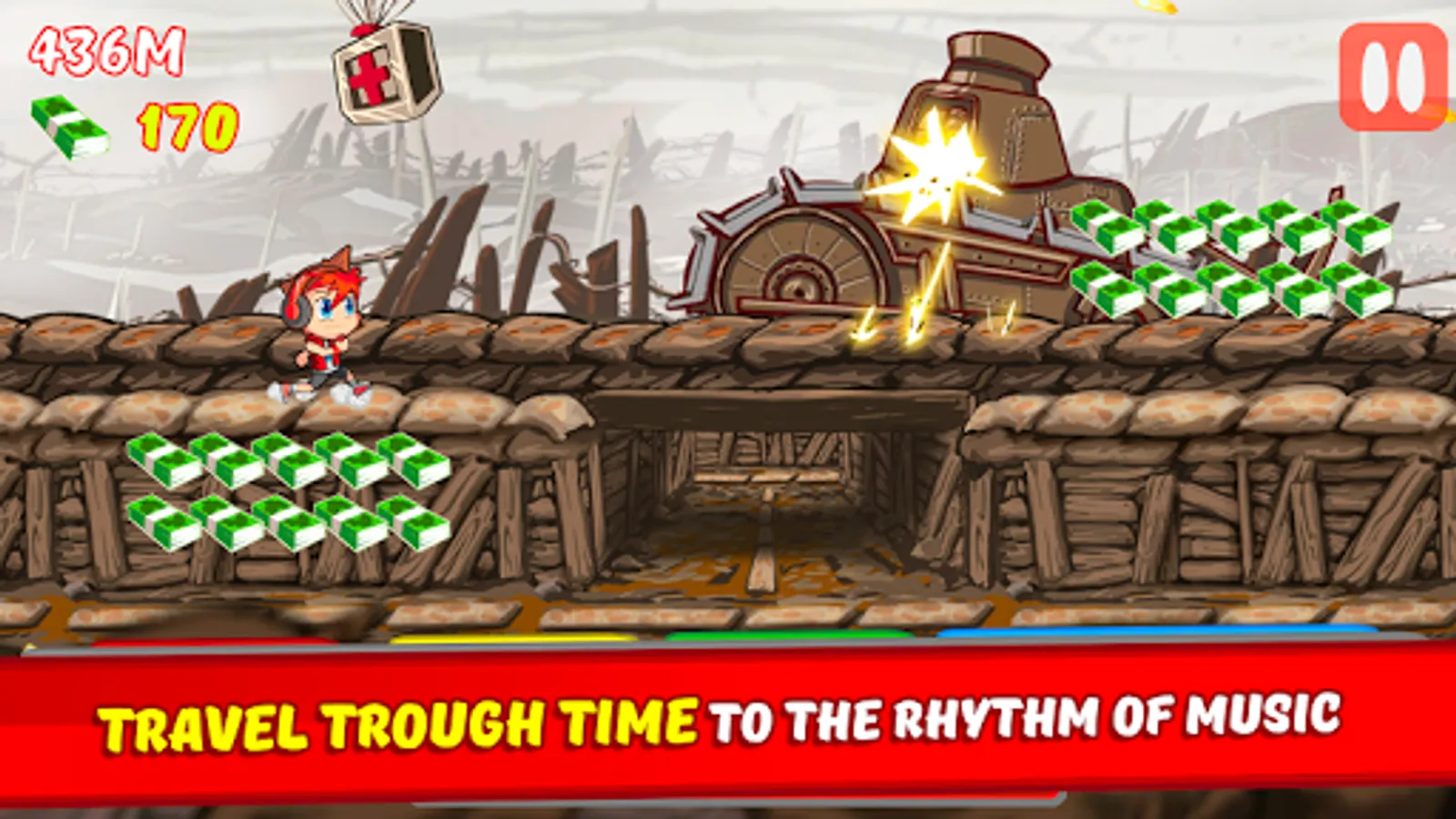 Join Walk Boy in this super original running game and travel through time to the rhythm of the music, but be careful not to touch certain objects because if you do it, History may turn to chaos! Run, jump, slide, surf, nosedive and make parkour to survive your enemies and obstacles.