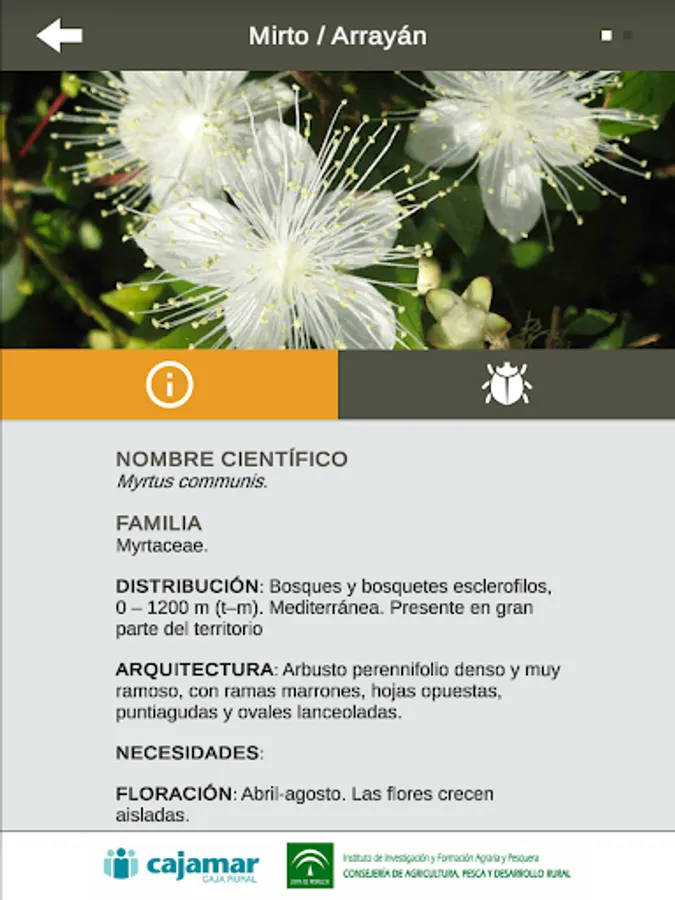 With this APP you can select plants that serve to attract these beneficial insects near your crops to help you regulate insect pest populations. 25 plants described herein have been selected, a total of 70 species, to fulfill certain requirements considered essential to attract beneficial insects. It is native shrubs, commercially available and are capable of harboring natural enemies of pests.