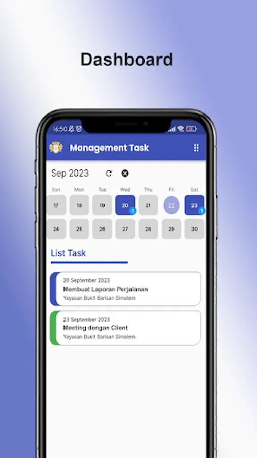 An application designed to help users organize and manage their tasks efficiently. The app allows users to create to-do lists, set deadlines, add descriptions, and group tasks by project or category. Users can easily view tasks that need to be completed or complete them. These applications are also often equipped with notification features to remind users of task deadlines. This application helps users become more organized and productive in managing their work and responsibilities.