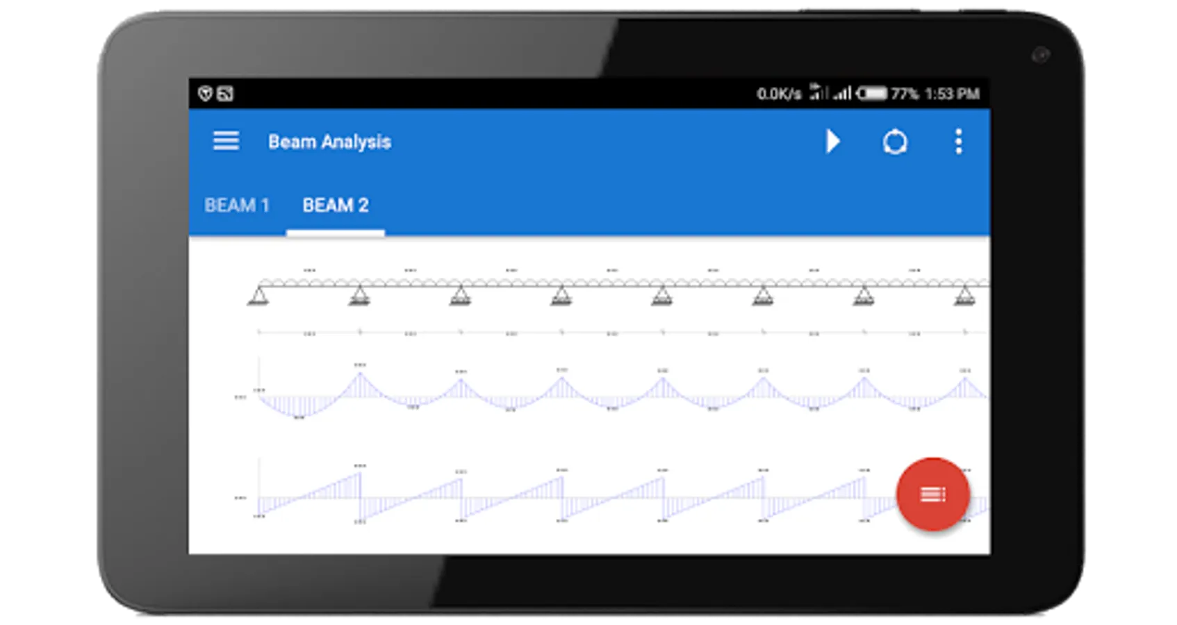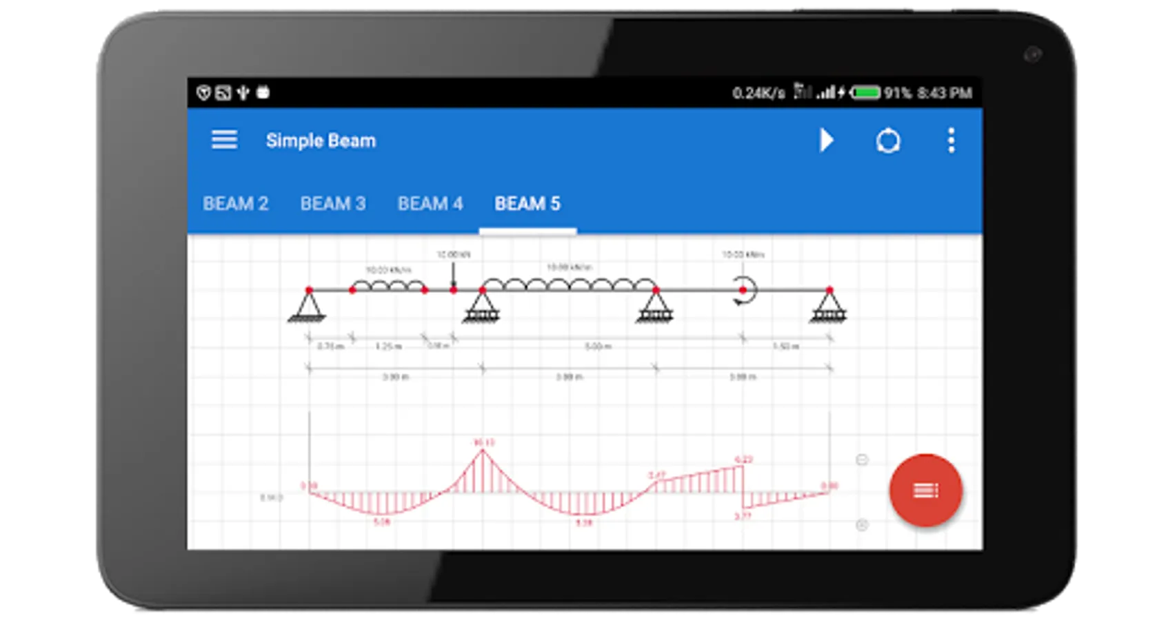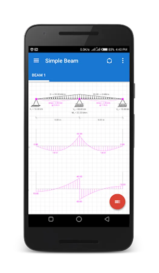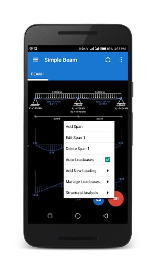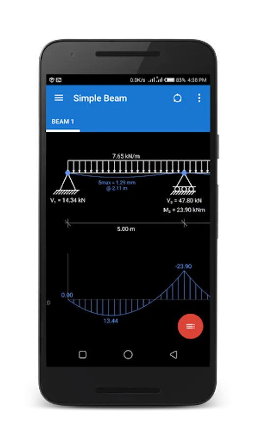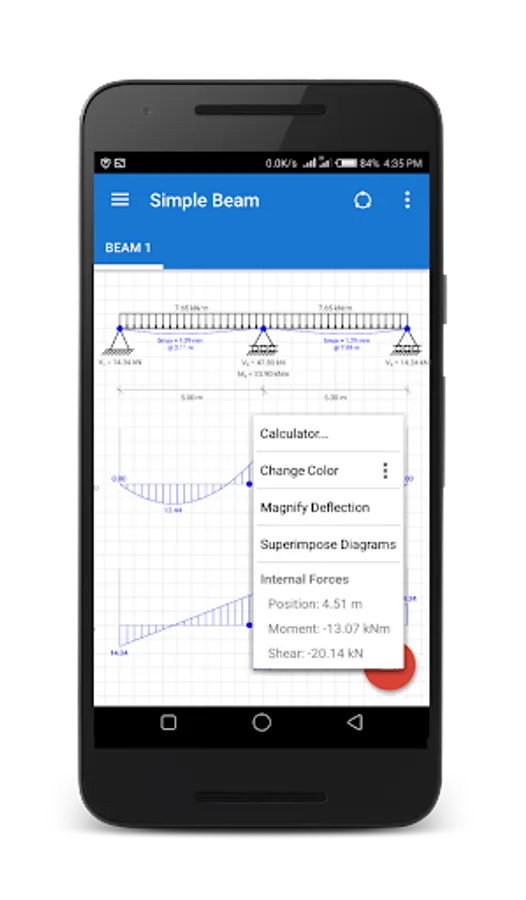 - Instantly view bending moment/shear force diagrams and deflected beam shape for each loading scenario.