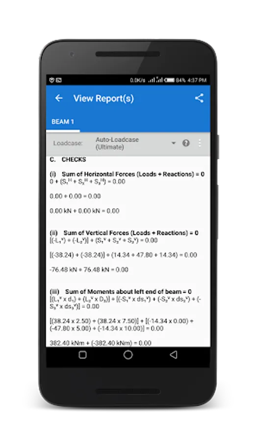 - Get detailed analysis report containing critical values such as maximum sagging/hogging moments, critical shear forces, maximum span deflection and end slope values.