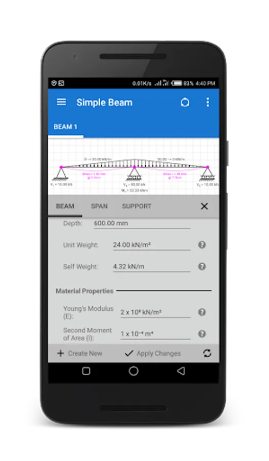 - Easily create beam structures of all kinds of span and support configurations.
