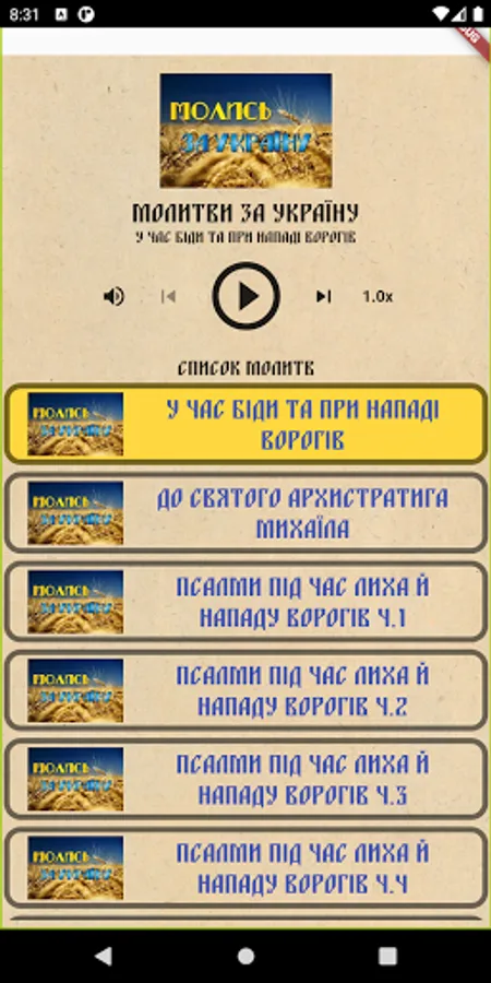The application was created to help in the Spiritual protection of the military during the defense of the Motherland. It has both a test and an audio component.