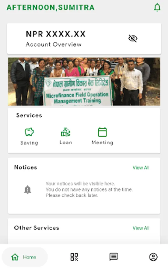 Digital passbook for Grameen Bikas Laghubitta members to view meeting schedules, loan info, saving info and other services.