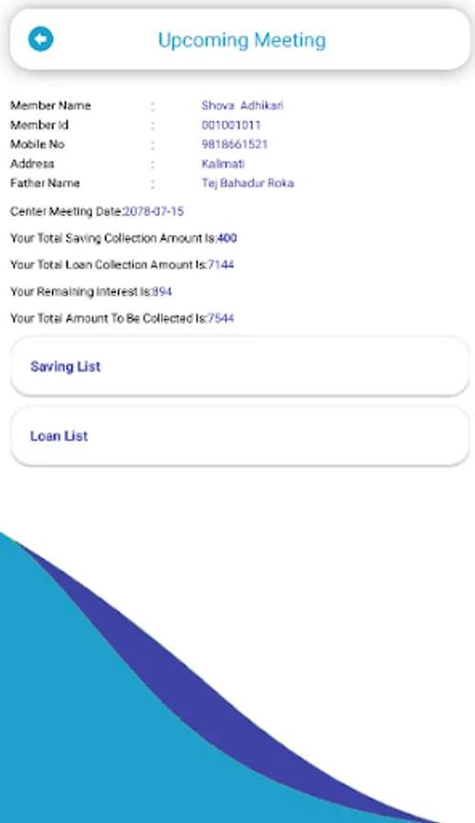 Digital passbook for Manushi laghubitta members to view meeting schedules, loan info, saving info and other services.
