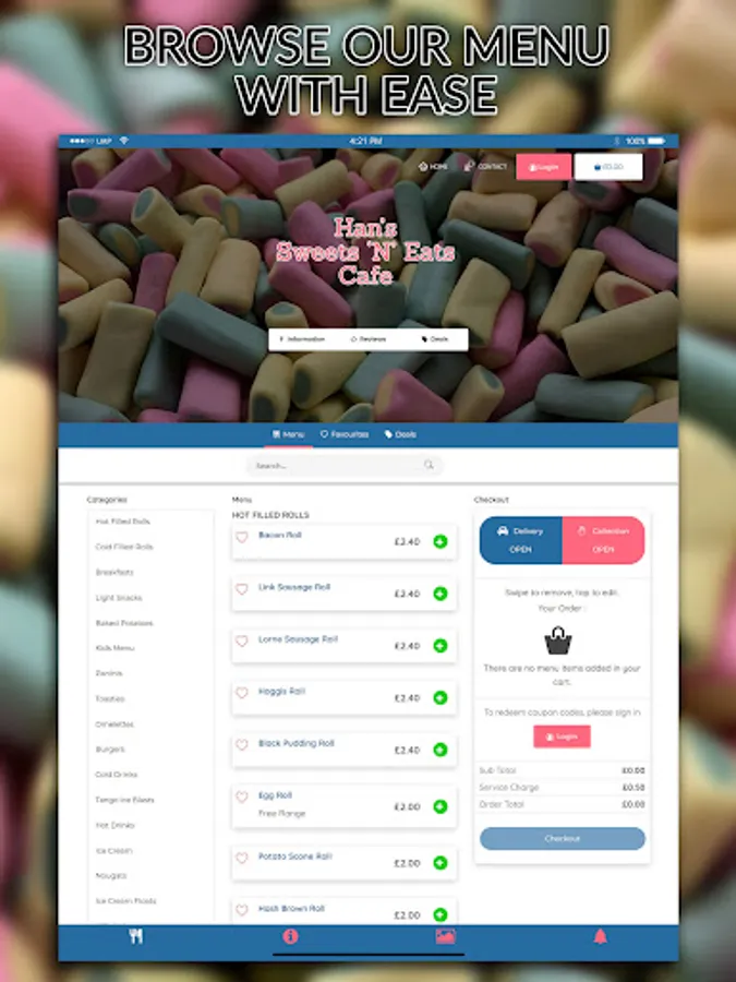 Order your favourites from Han's Sweets N Eats online using our new app. With a delivery option available our easy to use system allows you to order and pay for your food from our full menu, all online and at your convenience from the comfort of your home. Alternatively, if you want to collect your order then you can do that too! You can also register for an account on the app, which will speed up future orders as well as allow you to reorder your favourite food easily. You can also receive exclusive offers and updates direct from us.