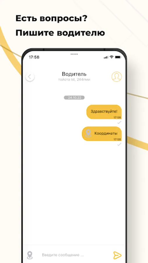 Use the option “Call a taxi for someone else” in the “Wishes” section and indicate his phone number. When the taxi arrives, an SMS will be sent to the specified number, and you will receive a message in the application.
