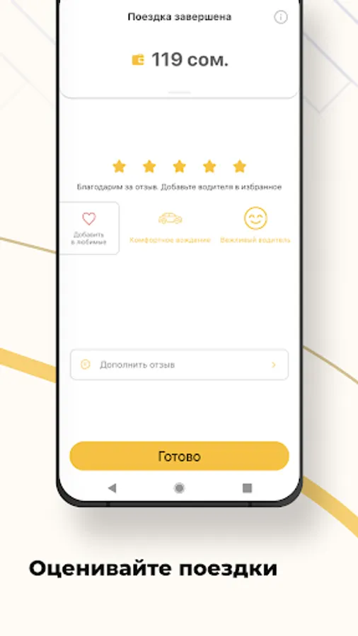 The delivery address will be determined automatically. You just need to indicate where you are going. Use templates with addresses and settings that you use most often to order a taxi in a couple of clicks.