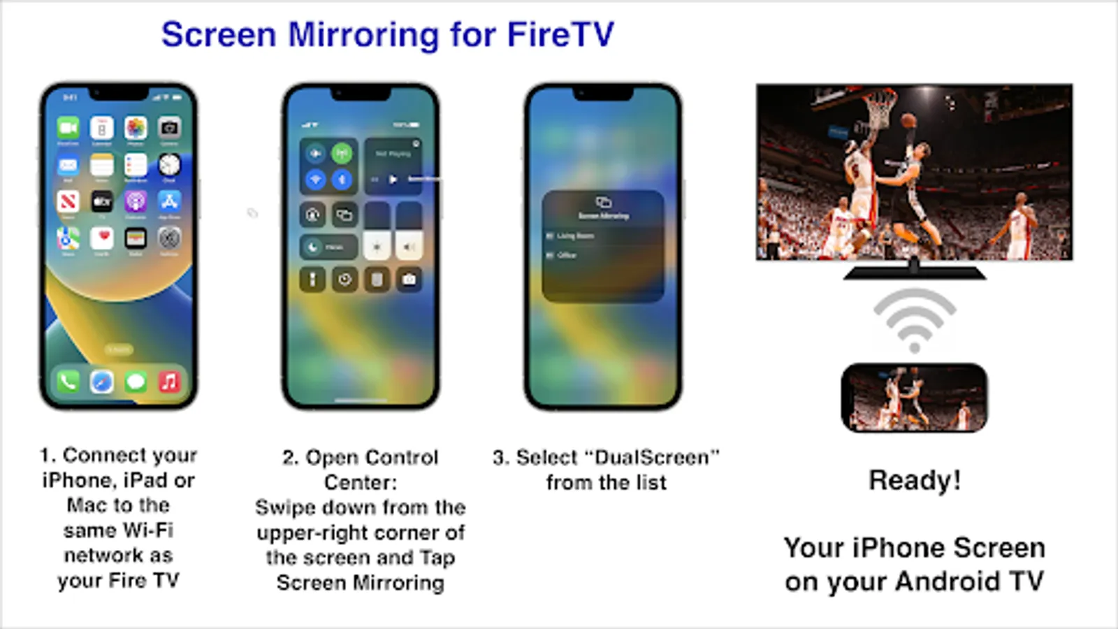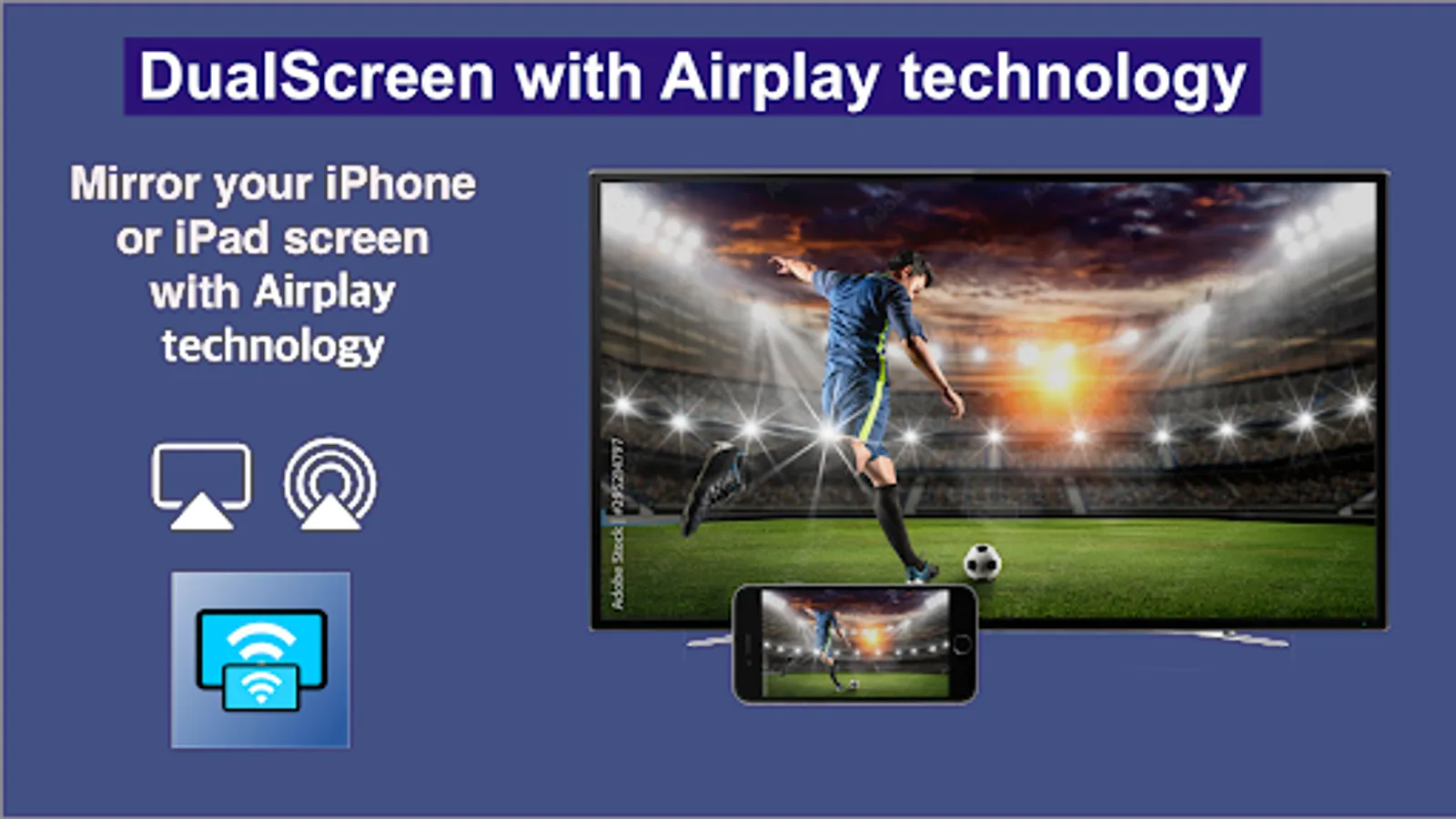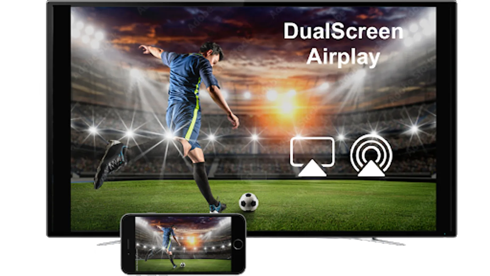 DualScreen is an Android TV app which lets you mirror your screen from your iOS mobile device to your Android TV.