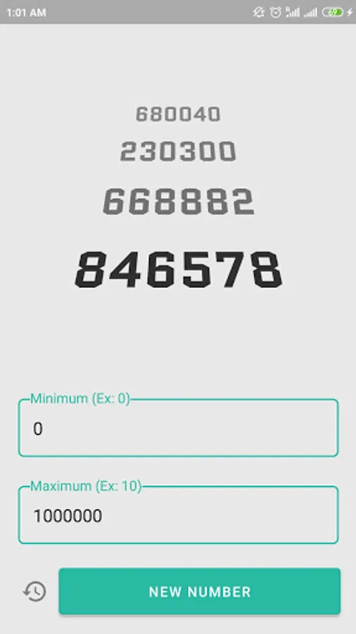 random number generator also stores (in the user phone only) the previous generated numbers in the history.