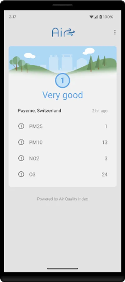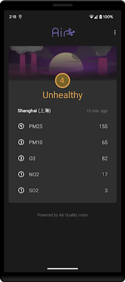 Get notified when air quality declines. See info on major pollutants in your are: PM2.5, PM10, NO2, SO2, CO, O3...