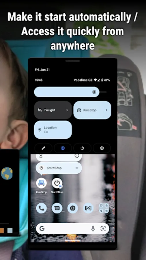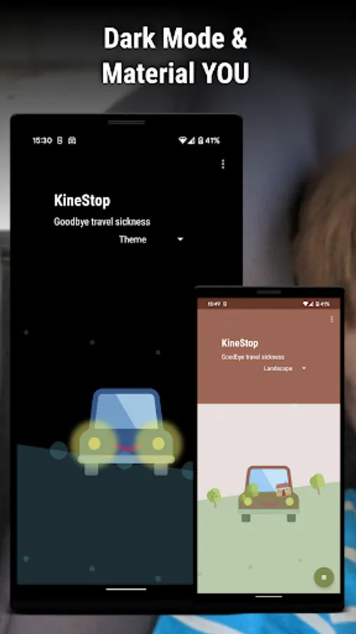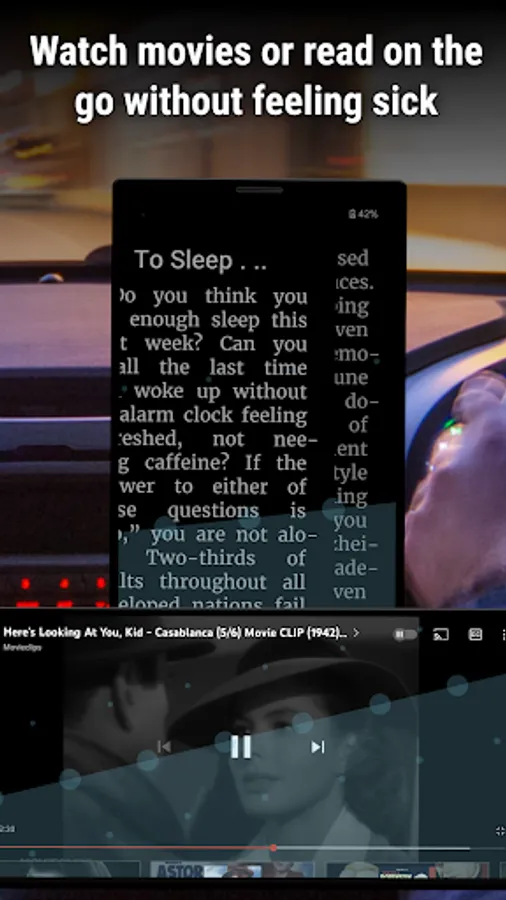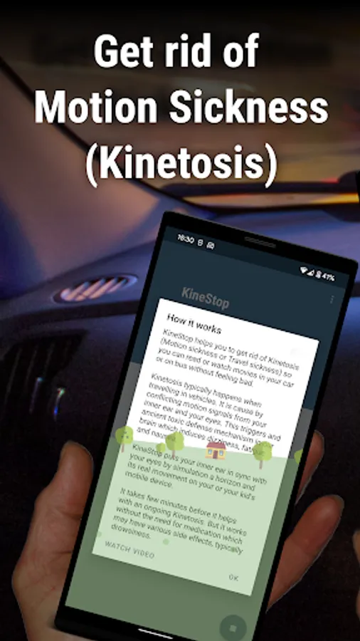 Get rid of Kinetosis (Motion sickness or Travel sickness) - read or watch movies in your car or on bus without feeling bad.