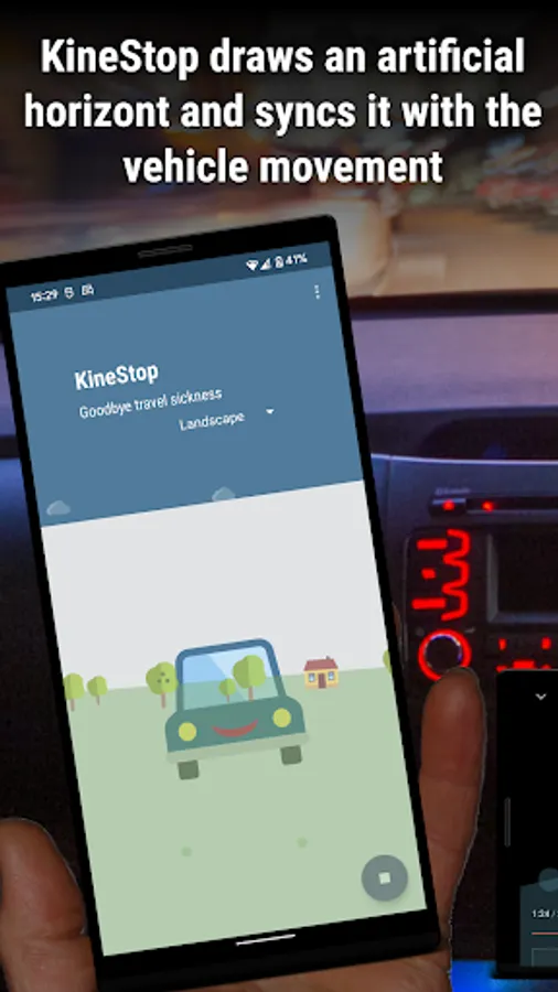 KineStop puts you back on track. It puts your inner ear in sync with your eyes by simulation a horizon on your or yours kids mobile device so that you can read or watch movies without the hassle.