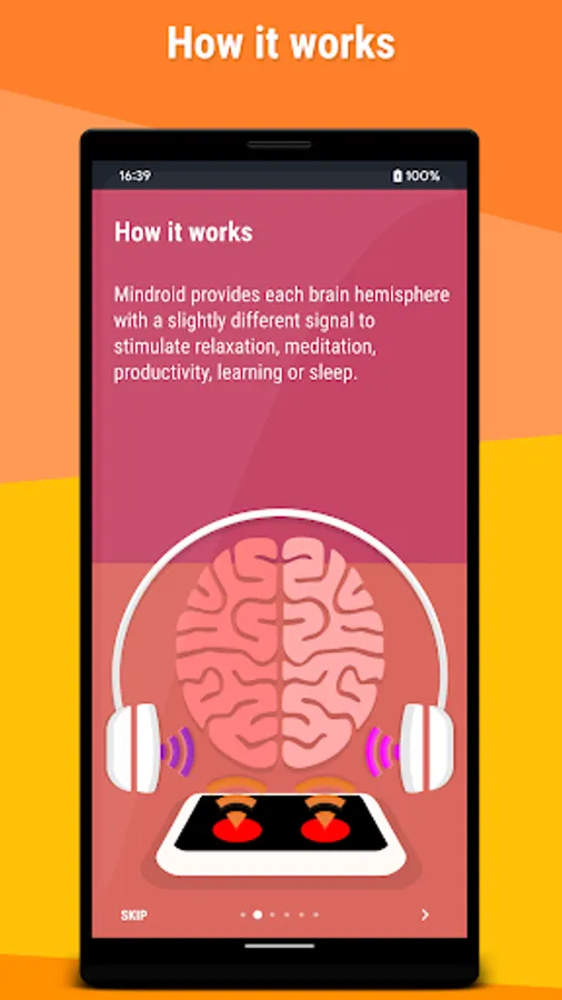 It helps you Relax, Meditate, be Creative and Productive or Sleep depending on the selected program. It is a great help for those fighting with stress or insomnia.