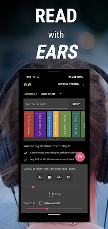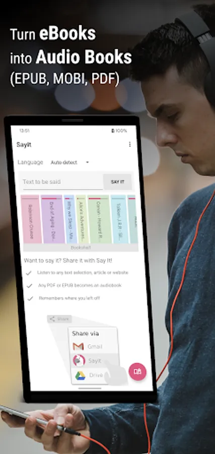 ✓ Any PDF or EPUB becomes an audiobook