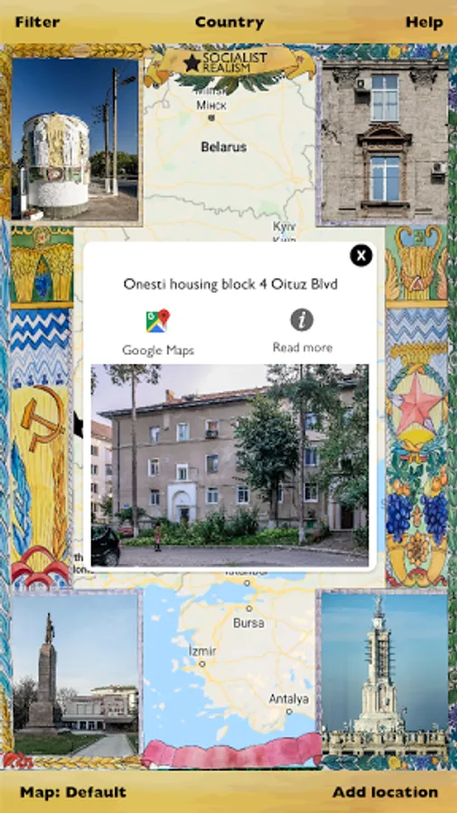 Socialist Realism platform is a B.A.C.U. Association project - Birou pentru Artă şi Cercetare Urbană (Bureau for Art and Urban Research) (www.bacu.ro) that fights for the acknowledgement of certain socialist landmarks as historic monuments.