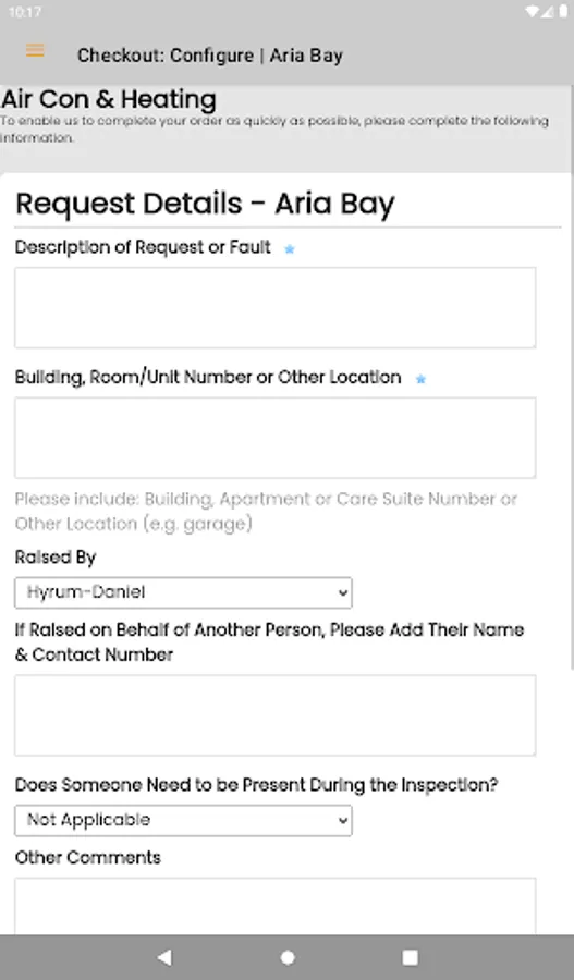 Enables staff & residents of Arvida Aged Care properties to raise maintenance & gardening requests from a list of service categories.