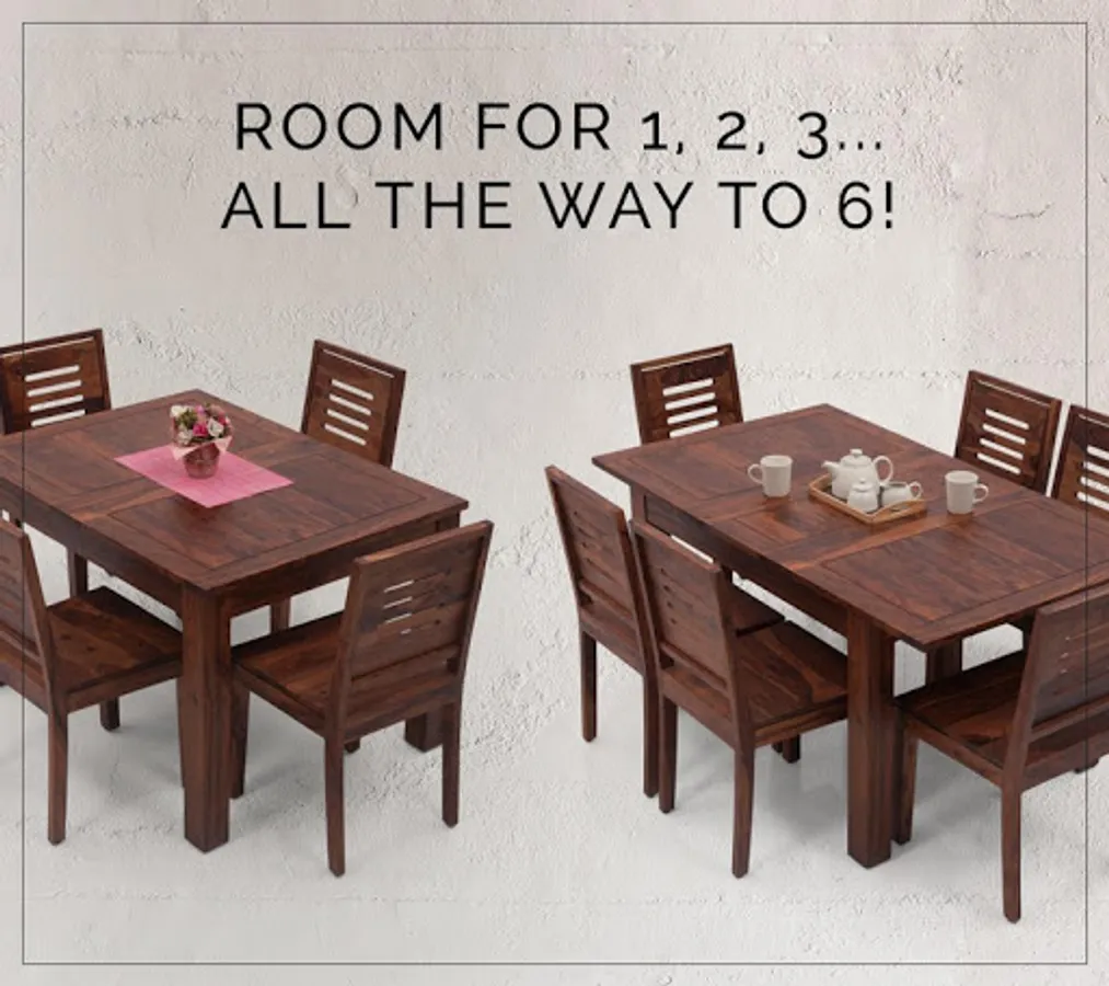 Dining room furniture: With a range of 400+ dining set designs to choose from, our collection is the largest in this space. Compact 2 and 3-seater dining sets, spacious 4-seater and 6-seater dining sets, and expansive 8-seaters - our catalogue has it all. We also have expandable dining sets designed for small spaces. You can mix and match our dining tables and chairs to create a set that’s perfect for you..
