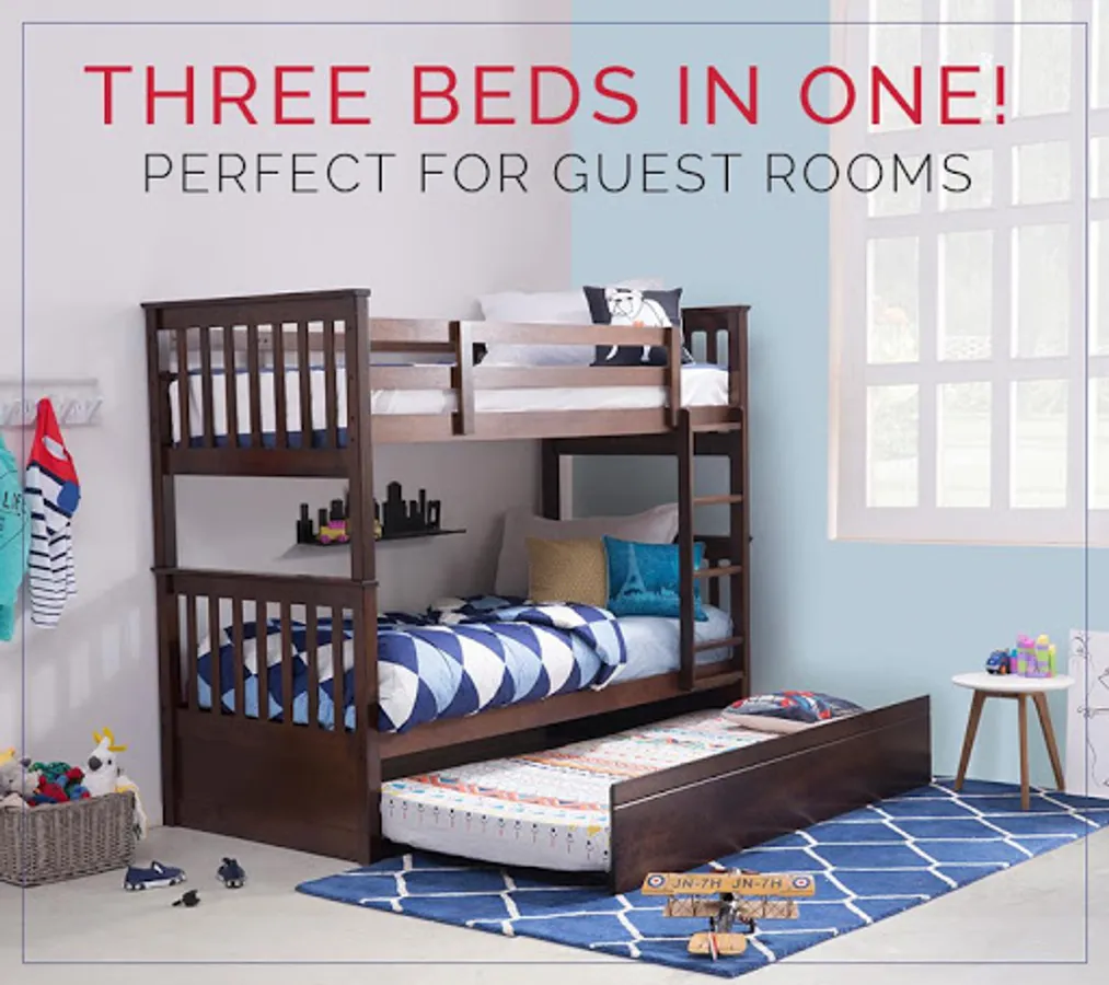 Living room furniture: From contemporary wooden sofas to designs upholstered in fabric, leather, or leatherette, we’ve tons of sofa set designs to choose from. Whether you want perfectly coordinated living room sets (including centre table, bookshelves, TV stand, etc.) or individual pieces that complement each other, our catalogue has it all.