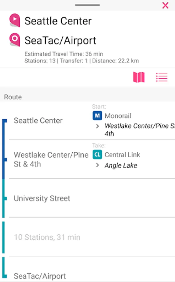 ROUTE PLANNER - instantly finds the fastest route and displays it on the map including transfer stations.